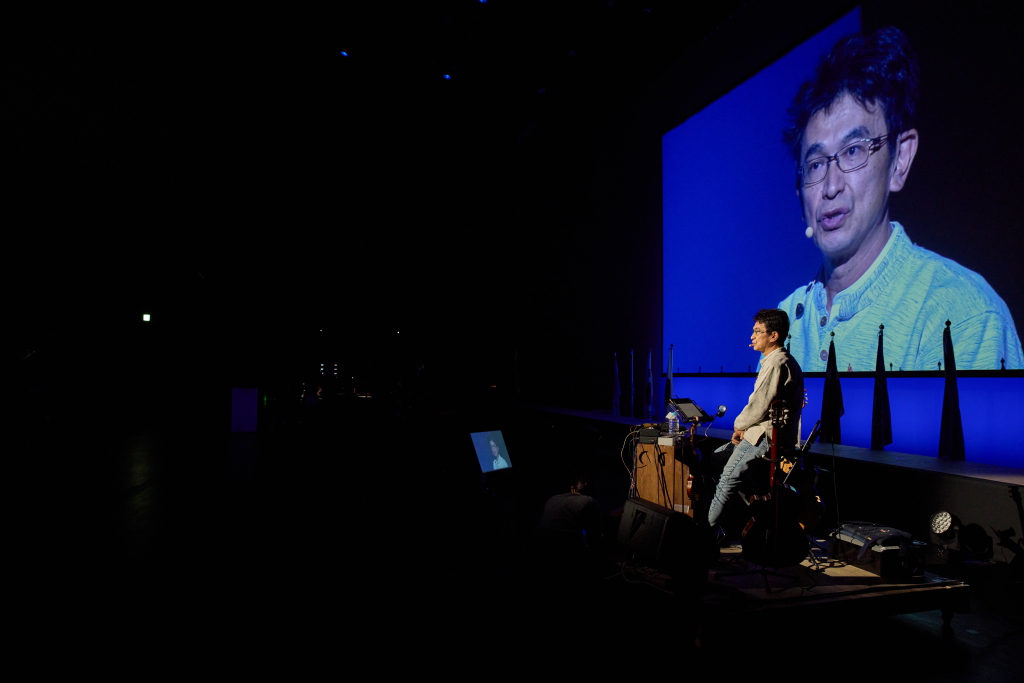 第3のテーマ「平和」については、将来世界との懸け橋となる青少年交換学生の紹介とスピーチの後、留学生によるソーラン節が披露されました。その後、NPO法人地球のステージ代表理事の桑山紀彦氏による戦争と平和についての感動的なお話しとギター演奏が行われました。