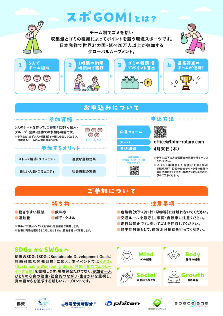 <お問い合わせ先> スポGOMI@ROTARY実行委員会 office@tbfm-rotary.com